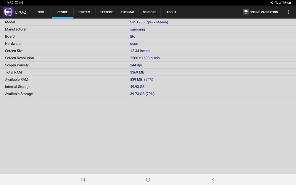 Samsung Galaxy Tab S7 FE-CPU-Z