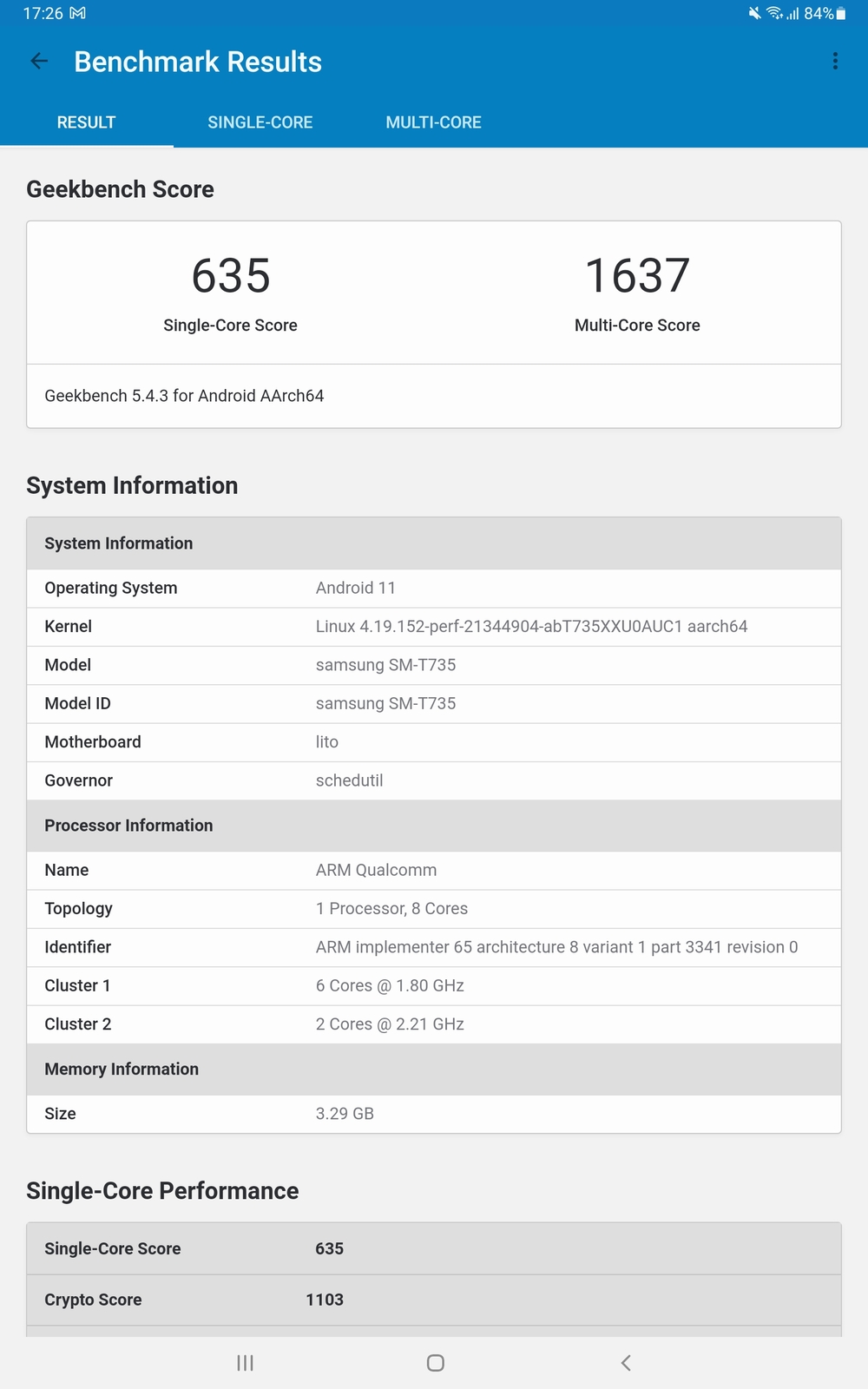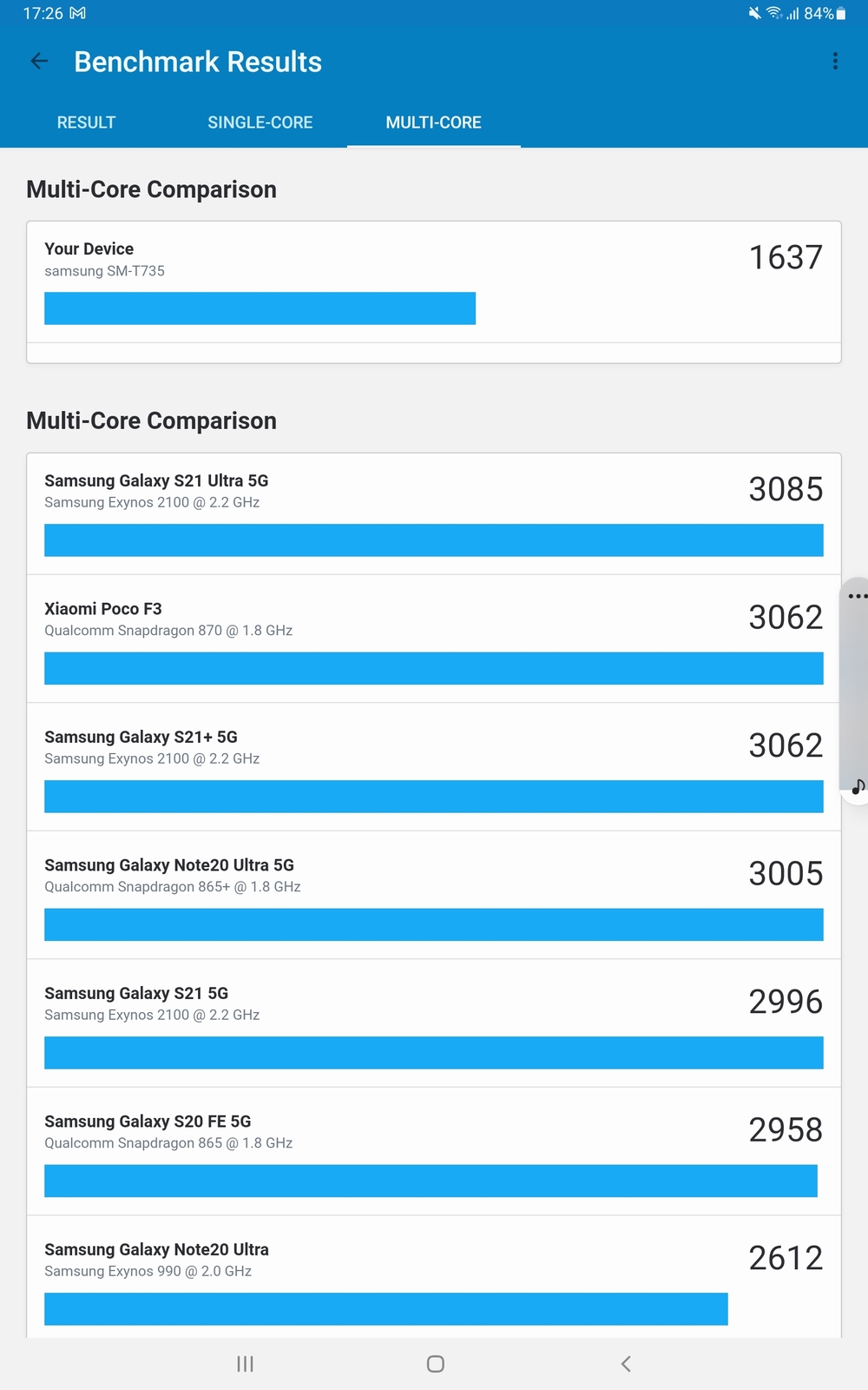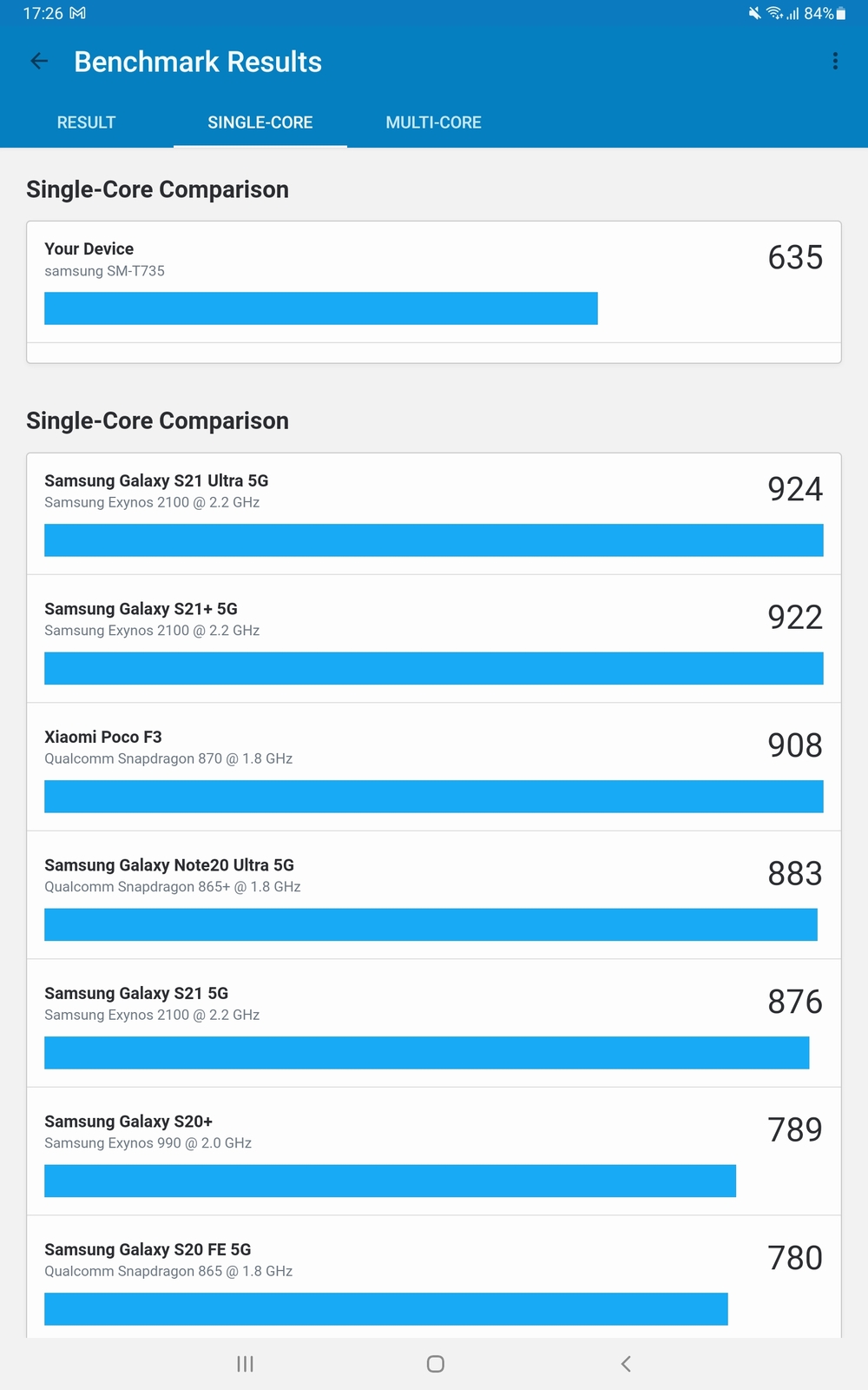 Очевидно, что это подтверждают и различные тесты, которые я провел. Samsung Galaxy Tab S7 FE набрал 635 баллов в одноядерном и 1637 балла в многоядерном, что логично ставит его ниже Samsung Galaxy Tab S7+ и среднего планшета на Android.