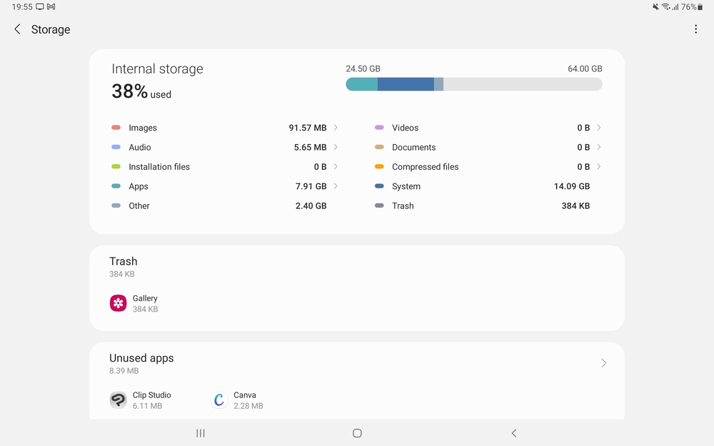 Это восьмиядерный процессор от Qualcomm с вычислительными ядрами Kryo 570 с частотой до 2,2 ГГц, дополненный графическим ядром Adreno 619, а также с 4 или 6 ГБ LPDDR4X 2133 МГц оперативной памяти и 64 или 128 ГБ встроенной памяти. Вы можете получить его только с Wi-Fi и Wi-Fi плюс 5G. У меня был вариант с 4/64 ГБ, что явно смазало мое впечатление от производительности планшета.