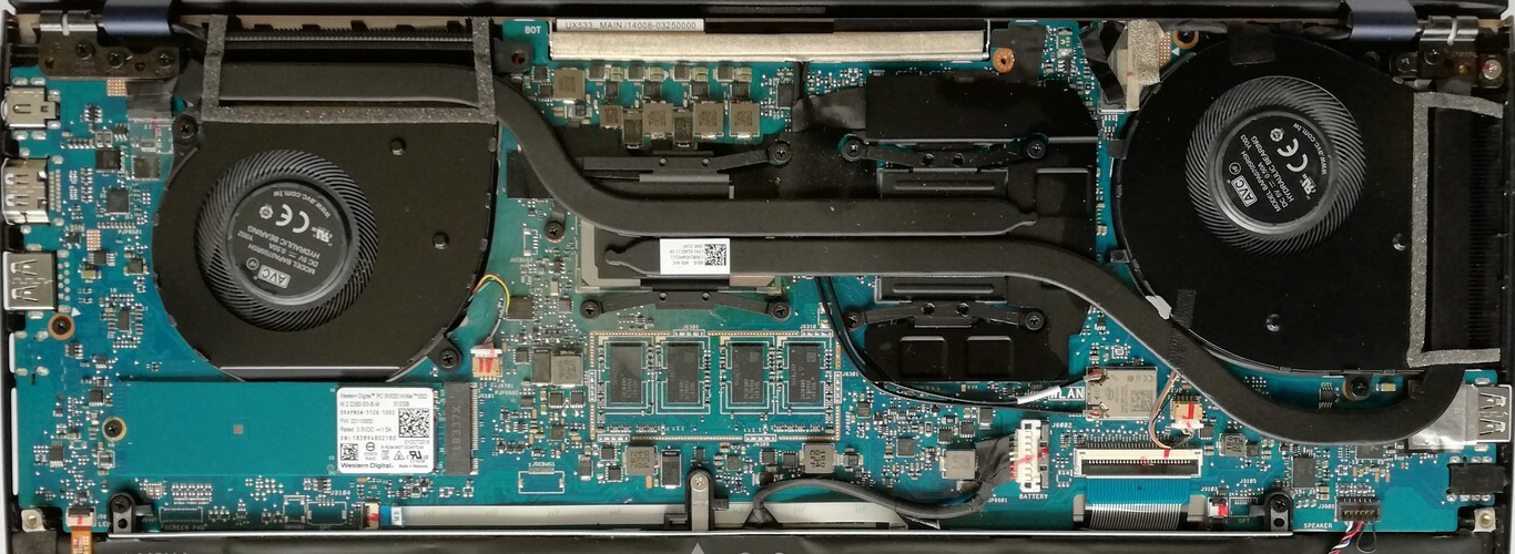 ASUS Zenbook 15 UX533FD может быть оснащен одним из двух процессоров Intel Core i5-8265U или Intel Core i7-8565U. В нашем варианте установлен Intel Core i7 8565U, который представляет собой четырехъядерный чип с тактовой частотой до каждого из ядер до 1.8 ГГц. При необходимости технология Turbo Boost позволяет увеличить частоту до 4.0 ГГц. Объем оперативной памяти составляет 16 Гбайт. Также доступны версии на 8 Гбайт. Во всех случаях используется память типа DDR4 с частотой до 2400 МГц, как уже отмечалось выше оперативная память распаяна на материнской плате и заменен не подлежит. Несмотря на то, что ноутбук тонкий он все же оснащен дискретной видеокартой, но тут нужно уточнить, что NVIDIA GeForce GTX 1050 с приставкой Max-Q будет уступать в производительности GTX 1050. Nvidia GTX 1050 Ti в варианте Max-Q — это энергоэффективная видеокарта среднего класса, ее основу составляет 14 н.м. графический чип на архитектуре архитектуре Pascal. Производительность GeForce GTX 1050 Max-Q ниже примерно на 10-15 % чем полноценная версия для ноутбуков GTX 1050, что касается ближайшего конкурента в лице AMD Radeon RX 560, то по производительности они приблизительно равны, а вот NVIDIA MX150 заметно уступает GTX 1050 в версии Max-Q. Для всех современных игр производительности NVIDIA GTX 1050 Max-Q хватит, но придется снижать настройки графики до уровня средние.