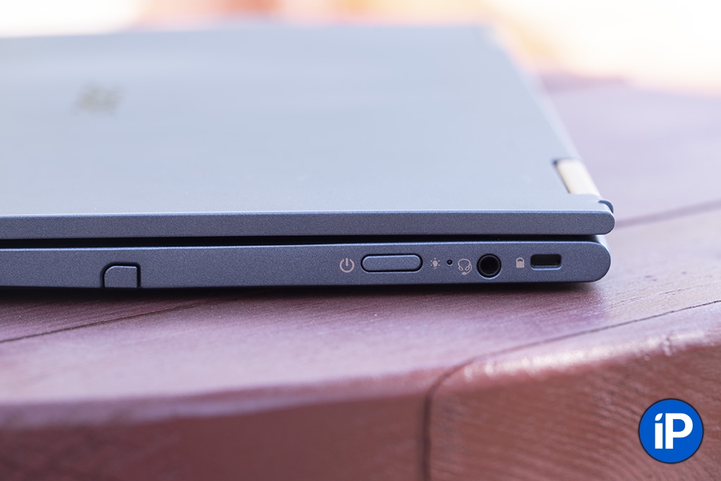 Корпус матовый, отпечатки пальцев не собирает. На гранях расположены два порта USB-C слева, а справа кнопка включения, гибридный аудио-разъём и разъем для замка Kensington lock. Также на правой грани можно нащупать шляпку стилуса.