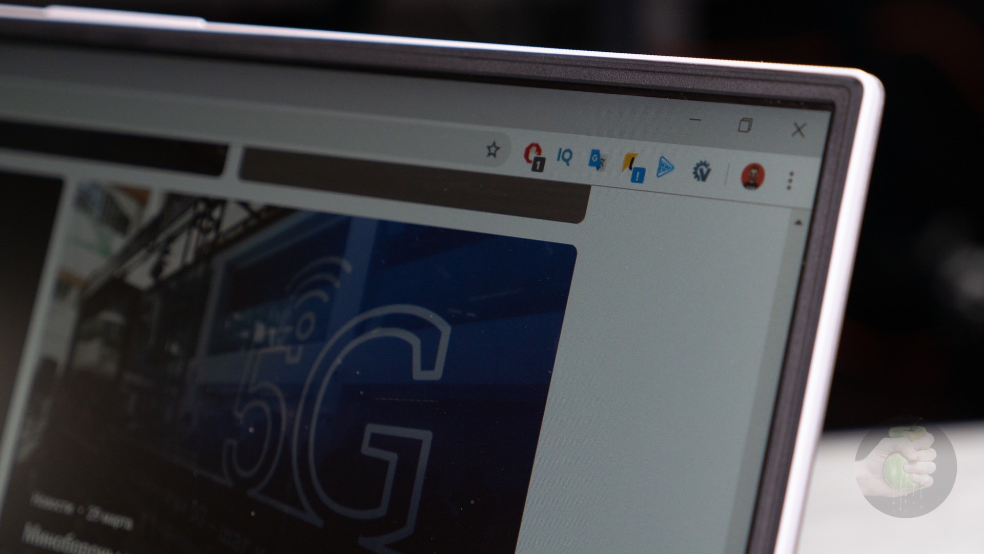 Дисплей занимает 86% панели, и в сравнении с размерами ноутбука на самом деле выглядит крупным.