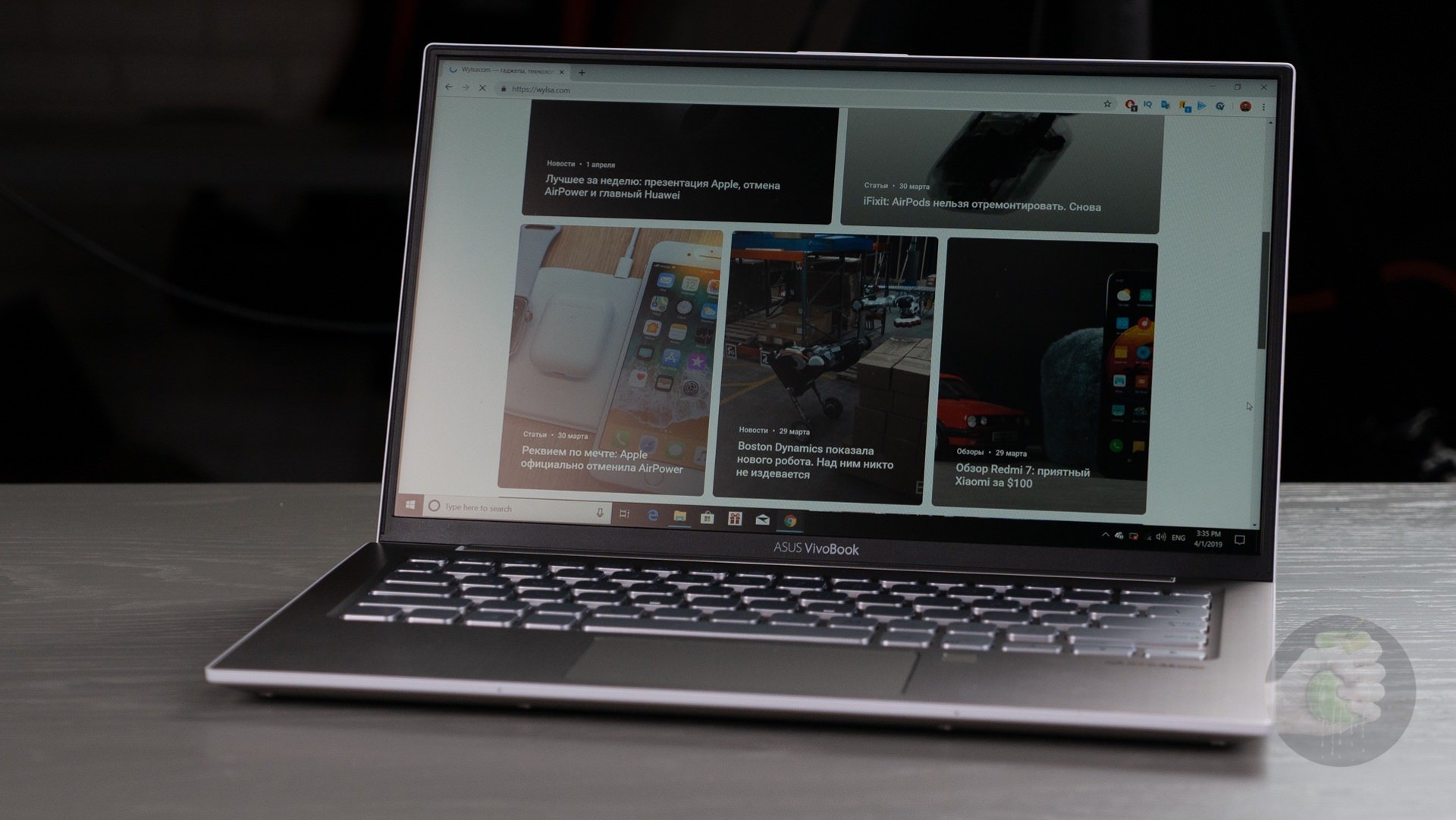 Аккумулятор у VivoBook S15 на 42 Вт*ч, этого хватает примерно на 3,5 часа работы в «офисно-домашнем» режиме: веб-сёрфинг, набор текста, простое редактирование фотографий, казуальные игры, видеосвязь в мессенджере, пока заряд не падает до 20 %