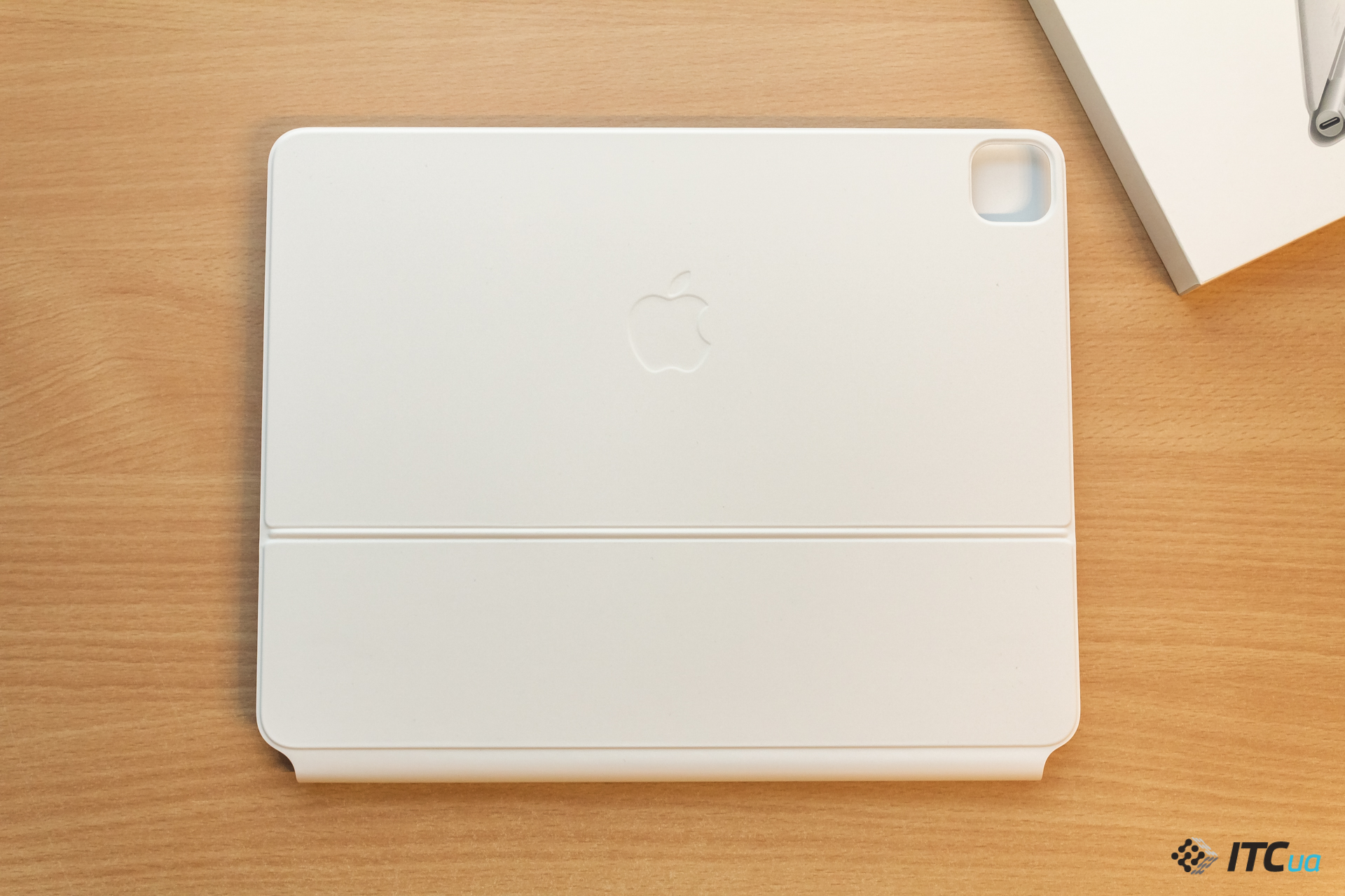 Magic Keyboard продается в цветах, совпадающих с обоими оттенками корпусов iPad. Она сделана из приятного покрытия soft-touch. В нашем случае она белая и есть ощущение, что испачкается такая достаточно просто. Но выглядит очень здорово.