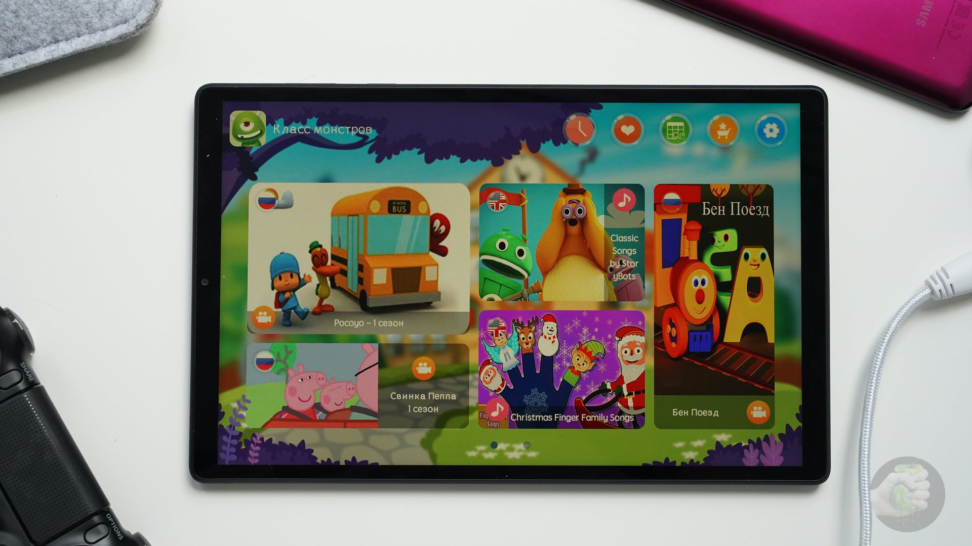 Планшет заряжается через разъём USB Type-C, в комплект входит зарядное устройство на 10 Вт, зарядка растягивается на два с половиной часа. Ёмкость встроенного аккумулятора невелика — 5000 мАч. Такой объём привычно видеть, скорее, в каком-нибудь долгоработающем смартфоне, чем в планшете с 10-дюймовым экраном.