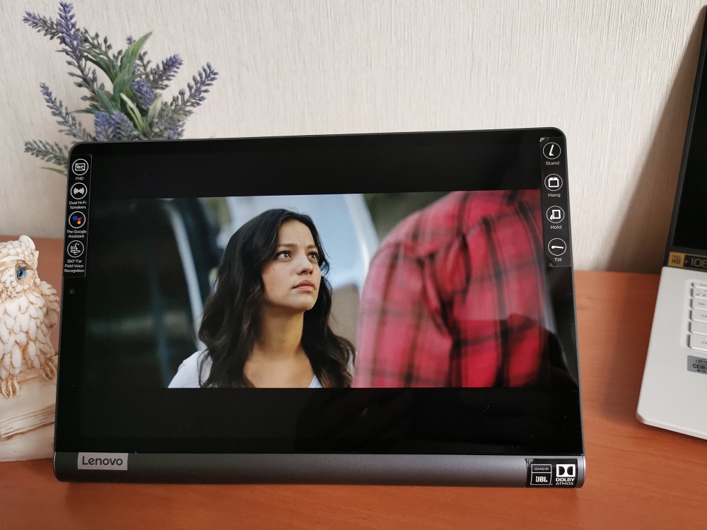 Lenovo Yoga Smart Tab оснащен 10,1-дюймовым IPS ЖК-дисплеем с разрешением 1200 x 1920 пикселей с соотношением сторон 16:10 и плотностью пикселей 224 ppi. Несмотря на Full HD разрешение дисплей выглядит неплохо, имеет большие углы обзора.