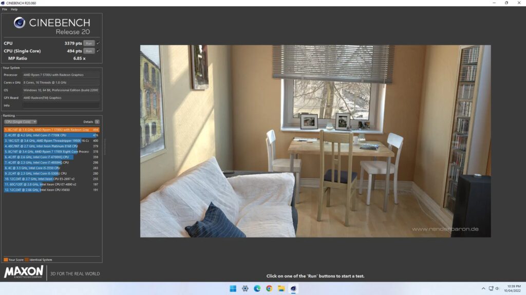 Мы также протестировали Cinebench R23: