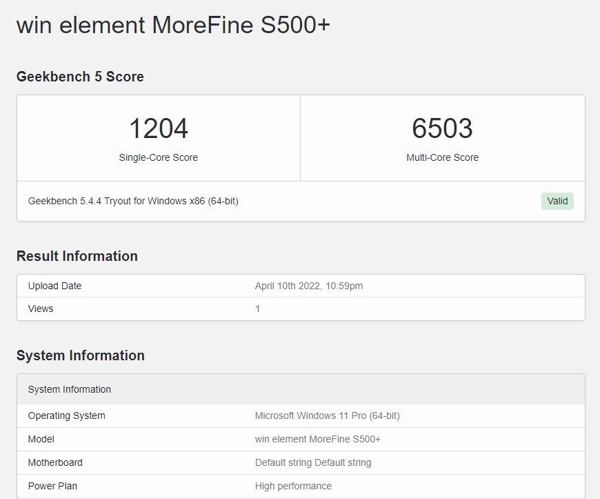 Производительность Morefine S500+ для Windows