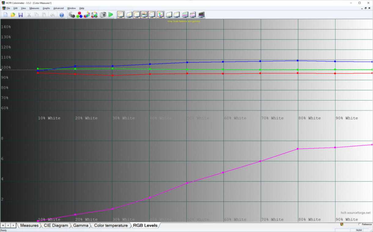 Оба режима обеспечивают охват более 100% цветового пространства sRGB, имеют эталонную гамму на уровне 2.2 и равномерную подсветку.