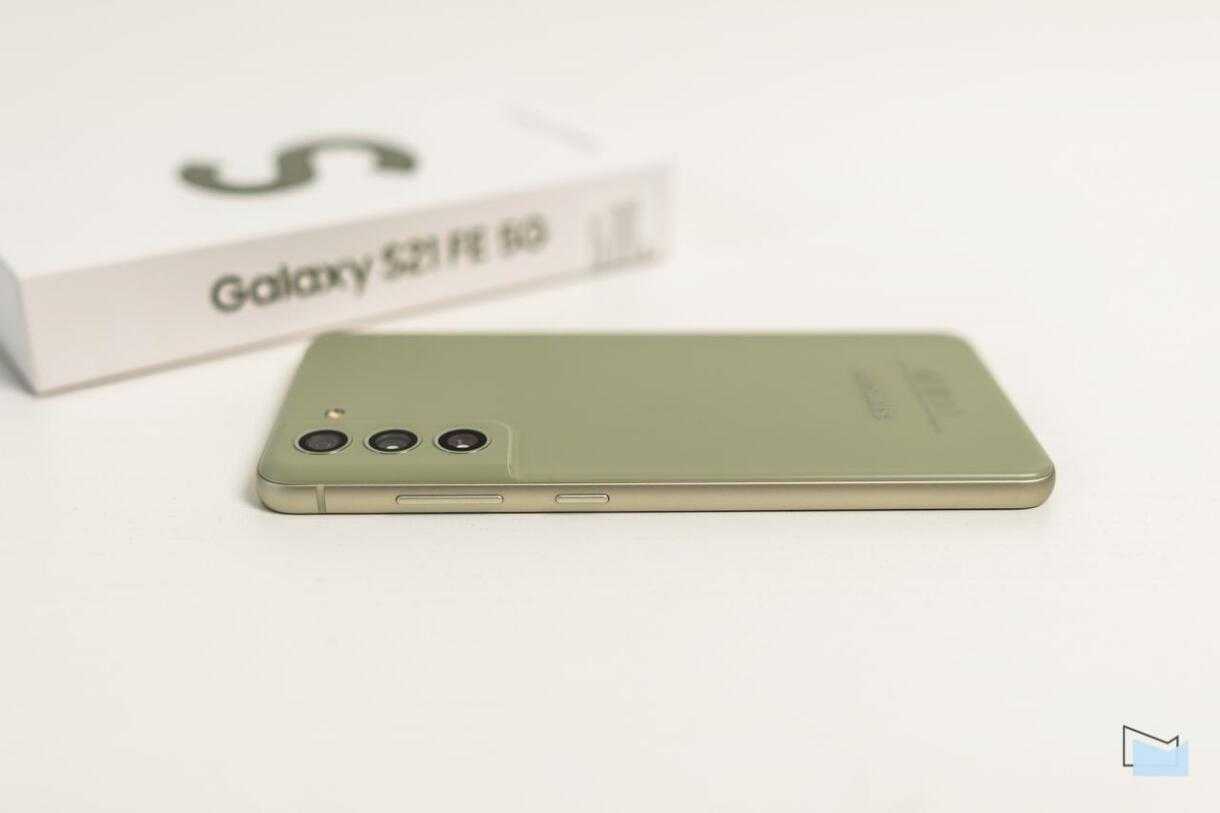 Тыльная часть S21 FE сделана из матового пластика графитового, молочного, оливкового или лавандового цвета. Тот же оттенок имеет и металлическая рамка корпуса.
