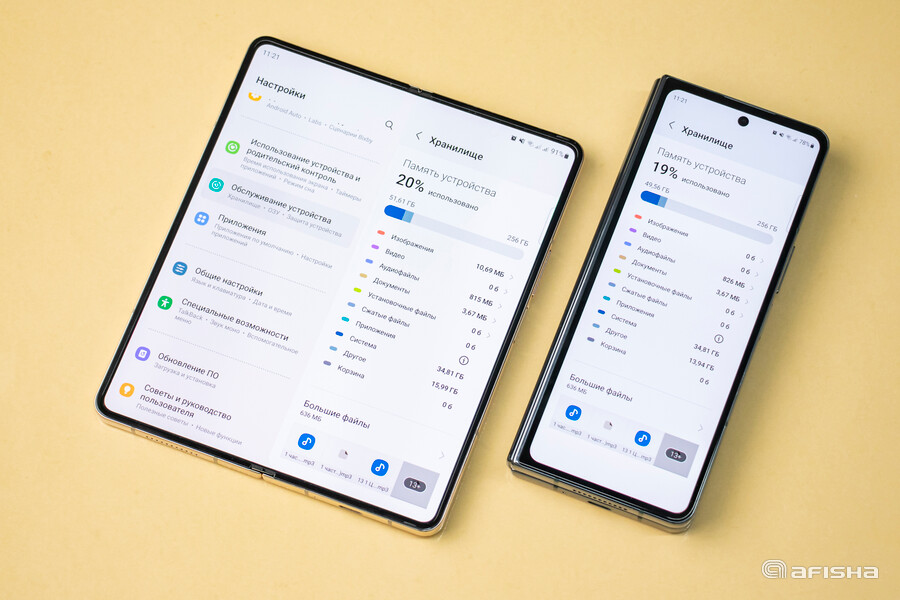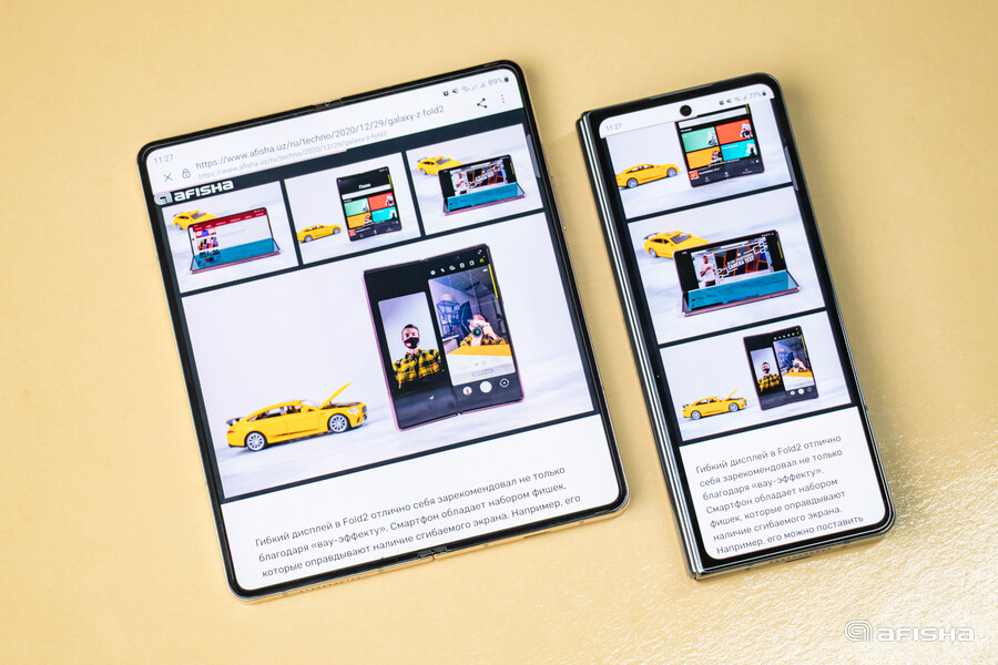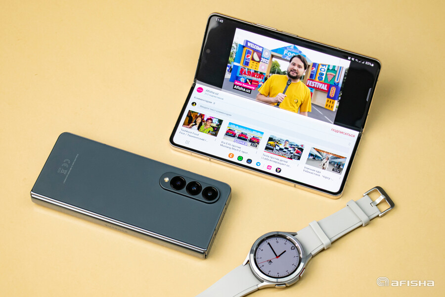 Но вот после приятного раскрытия картина меняется — Fold4 превращается из толстого узкого брусочка в сплошной экран с размером маленького планшета. На большом дисплее очень удобно смотреть фильмы и ролики из YouTube. Листать страницы тоже приятно — поддерживается высокая частота обновления изображения.