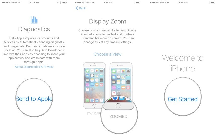 - Система предложит вам выбрать один из двух вариантов отображения информации на экране iPhone: «Стандартно» и «Увеличено». Если у вас нет проблем со зрением, выберите «Стандартно»;