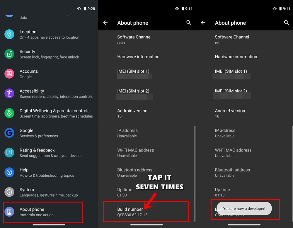 Now its time to enable USB Debugging on your device. For that, head over to Settings > About Phone > Tap on Build Number 7 times (Xiaomi users should tap on MIUI version 7 times) > You will get a toast message that You are now a developer.