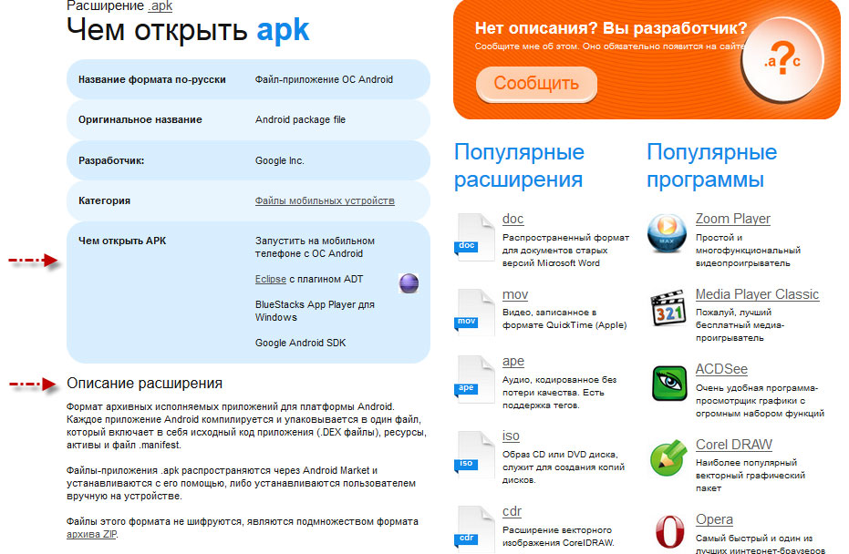 В результате поиск выдаст нам подробное описание расширения самого файла и, конечно же, укажет нам список программ, которые позволят нам открыть скачанный файл.