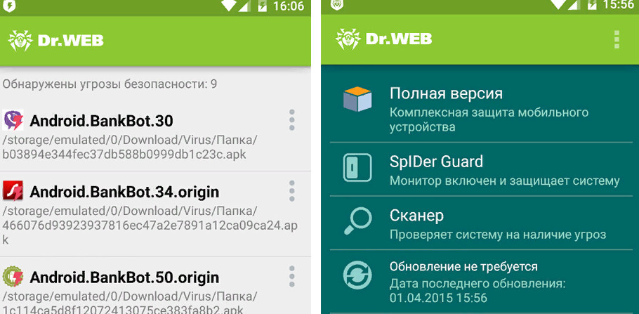 Для решения проблемы необходимо воспользоваться мобильной антивирусной утилитой Dr.Web Light: