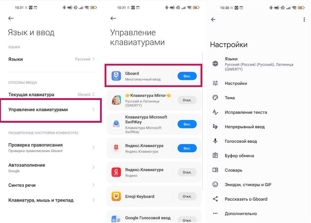 Но производитель позволяет заменить стандартную клавиатуру при необходимости. Среди пользователей Андроид востребована Gbord. Это клавиатура от Google, обеспечивающая удобный набор текста, имеющая массу настроек для адаптации под владельца устройства, поддерживающая смену оформления.