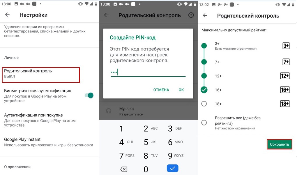 После этого нужно создать PIN-код и выбрать ограничение по максимальному рейтингу контроля программ, которыми может пользоваться ваш малыш.