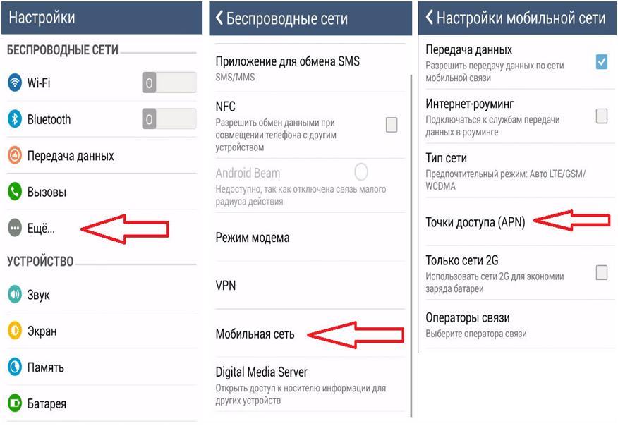 - Точка доступа — обычно здесь изменения не вносятся. Настройки высылаются поставщиком услуг и автоматически им устанавливаются. При ошибках пользователя достаточно воспользоваться версией, установленной по умолчанию.