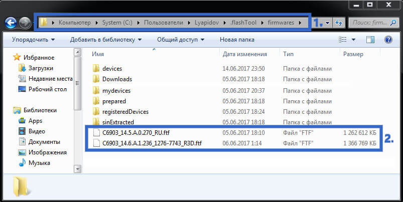 1. Поместите скаченный файл прошивки (формат «ftf») с сайта 4pda  для вашего смартфона в C:/Пользователи/username/.flashtool/firmwares/ ( где username — имя пользователя)