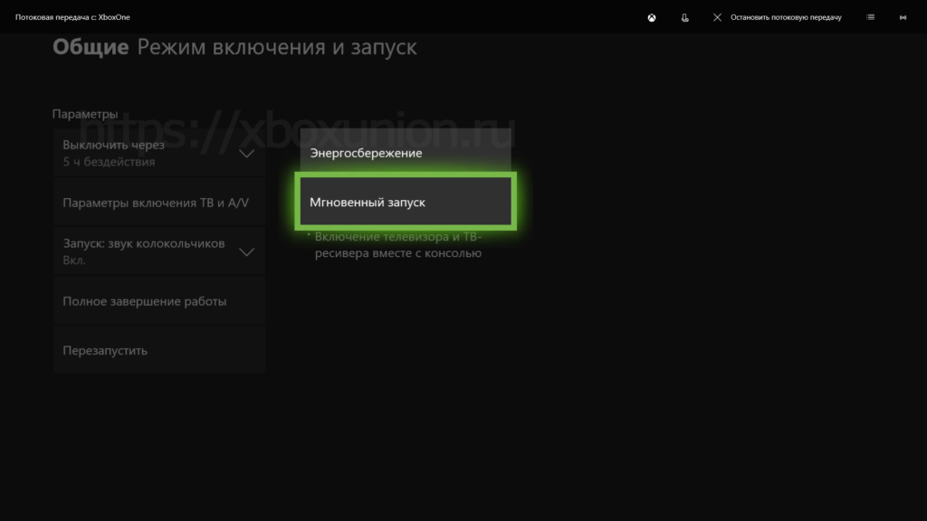 Последнее, это настройки энергосбережения консоли – активный параметр мгновенного запуска Xbox. Для этого перейдите в настройки → «Общие» → «Режим включения и запуск» → «Мгновенный запуск».
