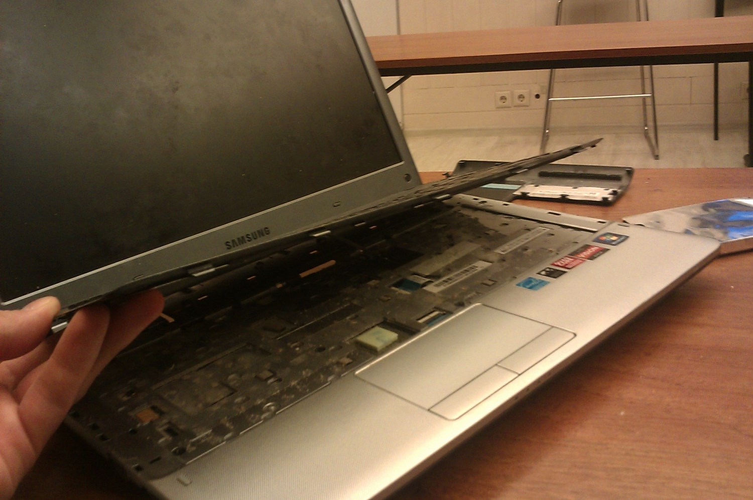 К ним можно отнести Wi-Fi адаптер в КЗ, разбитую матрицу ноутбука с повреждённым шлейфом экрана, расшатанные USB разъёмы и даже неисправность питания жёсткого диска, которая может вызвать эффект включения ноутбука и его моментальное выключение.