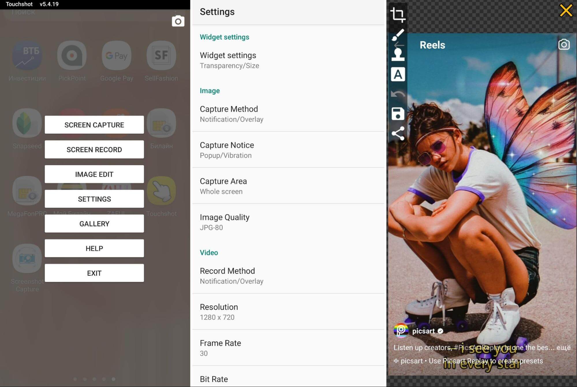 Универсальное приложение, совмещающее в себе средство для создания скриншотов и записи экрана на видео. Также включает в себя фоторедактор, в котором можно обрабатывать как созданные при его помощи снимки, так и любые другие фотографии из памяти телефона. Скриншотер добавляет небольшую панель с кнопками, после создания скрин сразу открывается для редактирования или загрузки в интернет.
