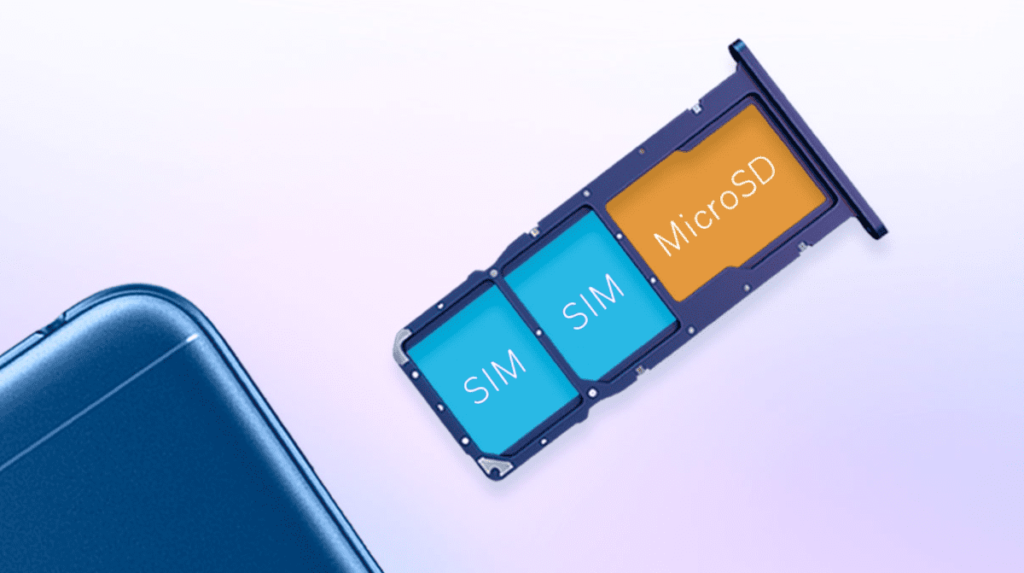 *В Самсунг А40 целых три слота в одном лотке — 2 под nano-sim и 1 под microSD карту.