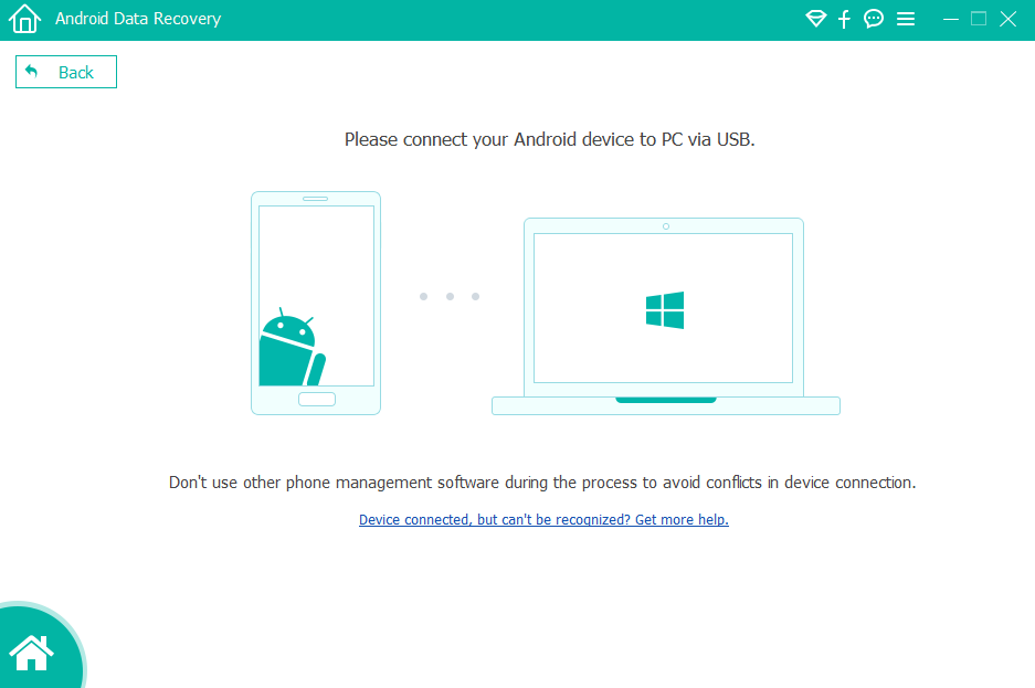 Загрузите и установите бесплатную пробную версию на свой компьютер с соответствующей ссылкой. Существует простое руководство по установке, которое поможет вам выполнить задачу в считанные минуты. Программное обеспечение запустится автоматически после установки. Затем подключите устройство Android через USB.