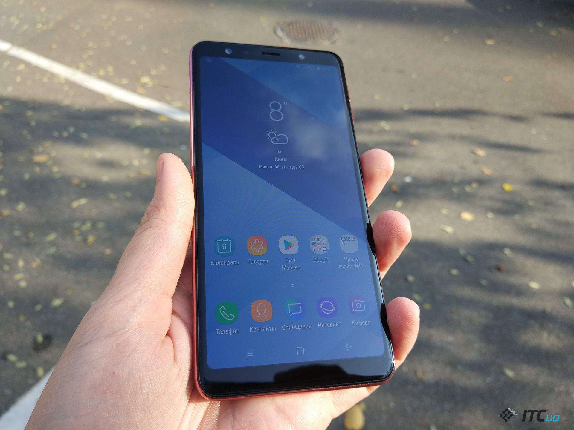 Samsung Galaxy A7 2018 оснащается 6-дюймовым Super AMOLED экраном с разрешением 2220×1080 точек и хорошим олеофобным покрытием.