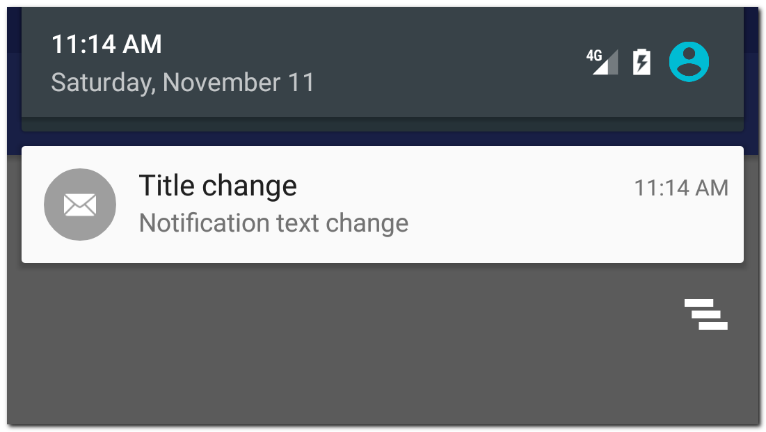 Мы отобразили уведомление и теперь хотим его обновить. Для этого нужно просто снова показать уведомление методом notify и использовать при этом тот же id.