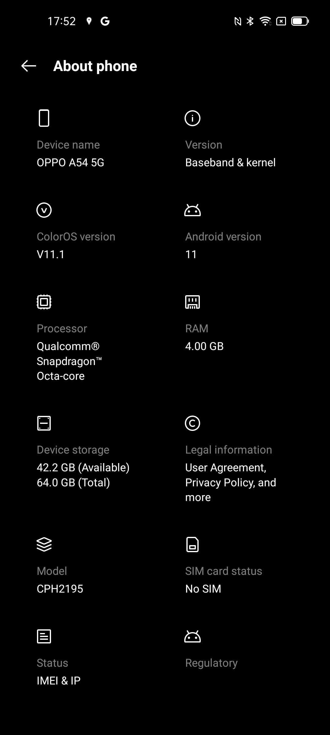 OPPO A54 5G — действительно хороший БЮДЖЕТНЫЙ телефон. У него качественный дисплей, хорошая эргономика и приемлемые размеры, удобный сканер отпечатков в боковой клавише, 5000 мАч батарея, есть NFC, основная камера делает прекрасные кадры при хорошем освещении. Что страдает, так это производительность, процессор базовый, оперативной памяти минимум, ПО не лучшим образом оптимизировано. Здесь можно было бы оговориться, что от бюджетников и не стоит ждать быстродействия флагманских моделей. Но за этот конкретный бюджетник просят многовато. Вероятно, дело в поддержке сетей 5G, но не для всех это актуально.