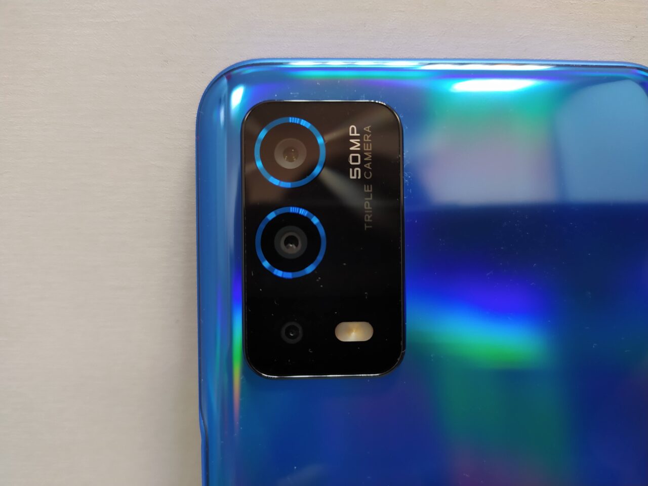 Модуль камеры не сильно выступает над поверхностью задней крышки и состоит из трех камер и вспышки. Расположение датчиков считаю спорным, ведь большую часть модуля занимает надпись «50MP TRIPLE CAMERA», все таки я больше люблю минимализм, хотя это дело вкуса.