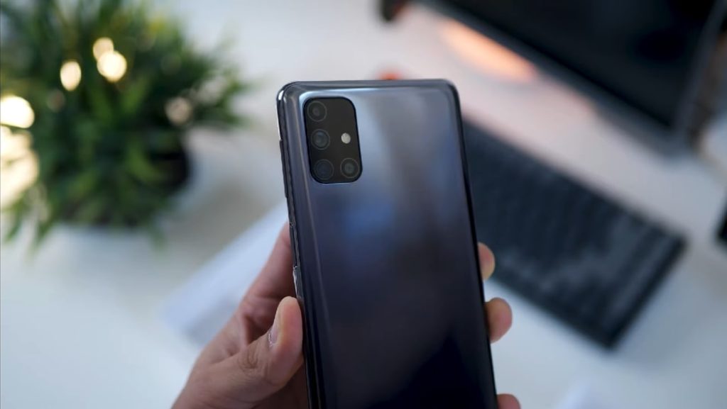 Стоит отметить, что новинка практически повторяется дизайн Galaxy M21, вышедшей в мае 2020 года. В верхнем левом углу задника расположен массивный глянцевый блок из четырех камер, а также вспышки. Черный безель, окантовывающий блок, защищает его от повреждений. В нижней границе размещено лого.