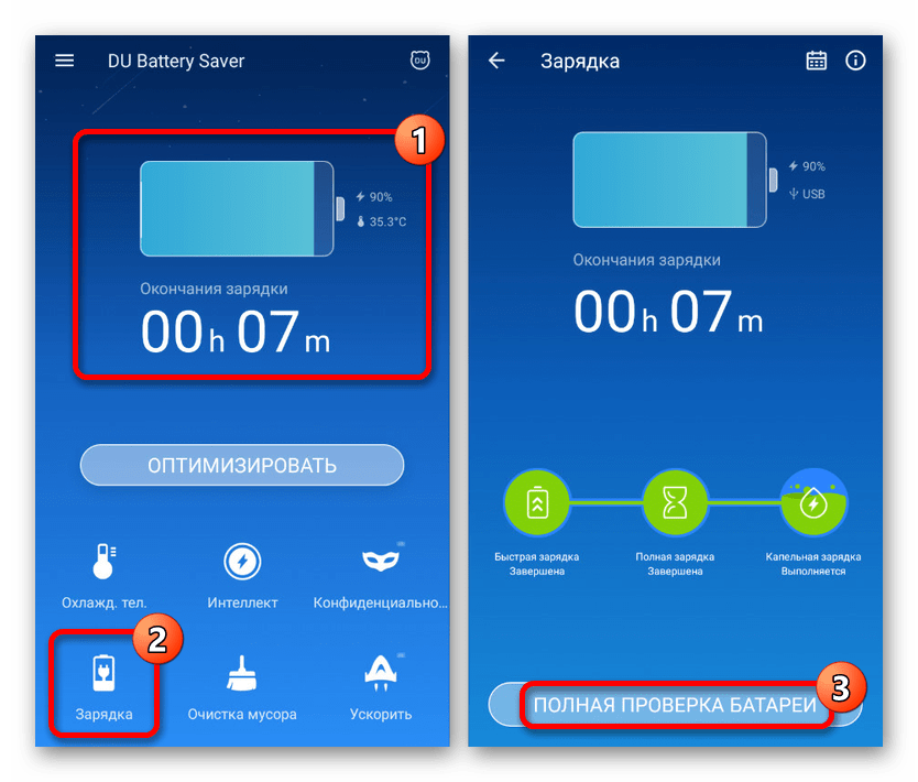 В то время как основные ситуации легко решаются системными средствами смартфона, причиной быстрой разрядки во время ожидания также могут быть неполадки аккумулятора. Проверить наличие подобных проблем можно с помощью специальных приложений, одним из которых выступает DU Battery Saver.