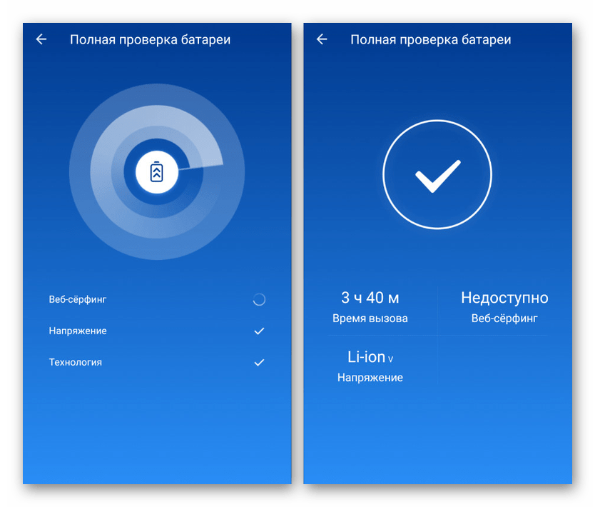 Дождитесь завершения процедуры и, если аккумулятор работает правильно, приложение выдаст соответствующее уведомление. То же самое можно сказать о случаях с неисправностями.