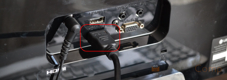 Рассмотрим, как к телевизору подключить монитор от компьютера с помощью разъемов HDMI. Это наиболее распространенный и привычный способ. Для начала нужно выключить все устройства из сети (из розетки), вставить один конец кабеля типа HDMI-HDMI в разъем телевизора, второй конец – в разъем компьютера. Включить сначала телевизор, после него – компьютер и дождаться их загрузки.