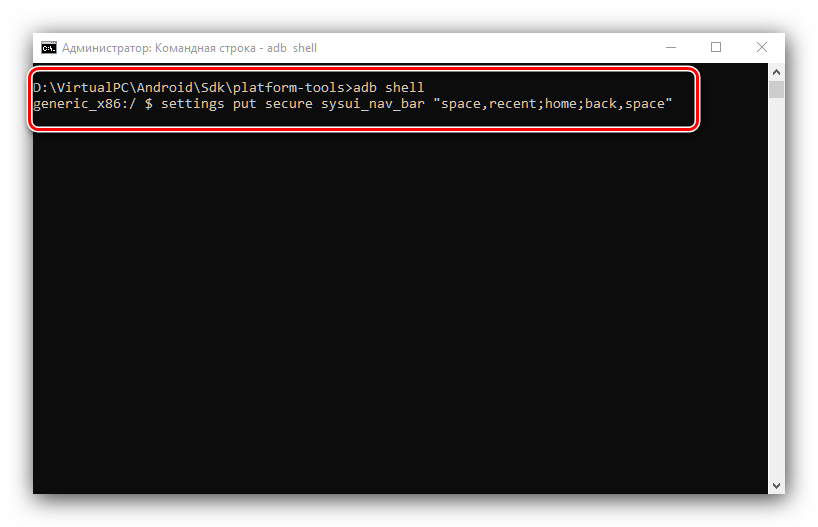 Необычным способом перемещения элементов навигационной панели будет использование средства Android Debug Bridge.