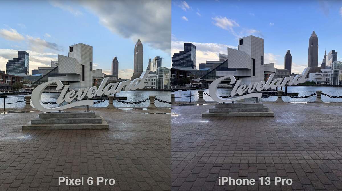 На первый взгляд фото, сделанное на iPhone 13 Pro, выглядит контрастнее и резче. Но если увеличить объекты на заднем фоне, например, здание около причала слева, у Pixel будет больше деталей. Спасибо HDR.
