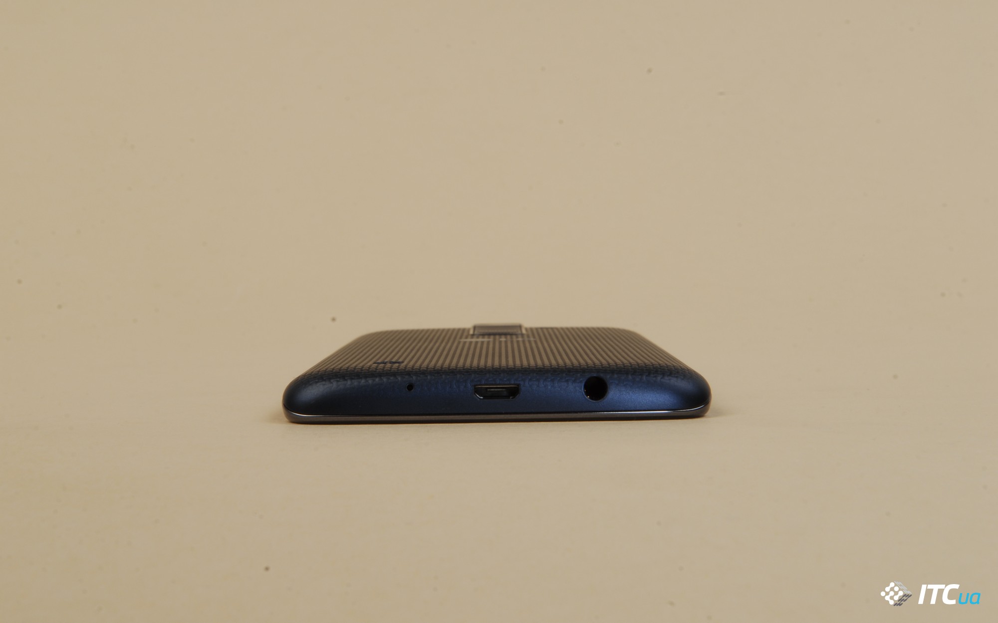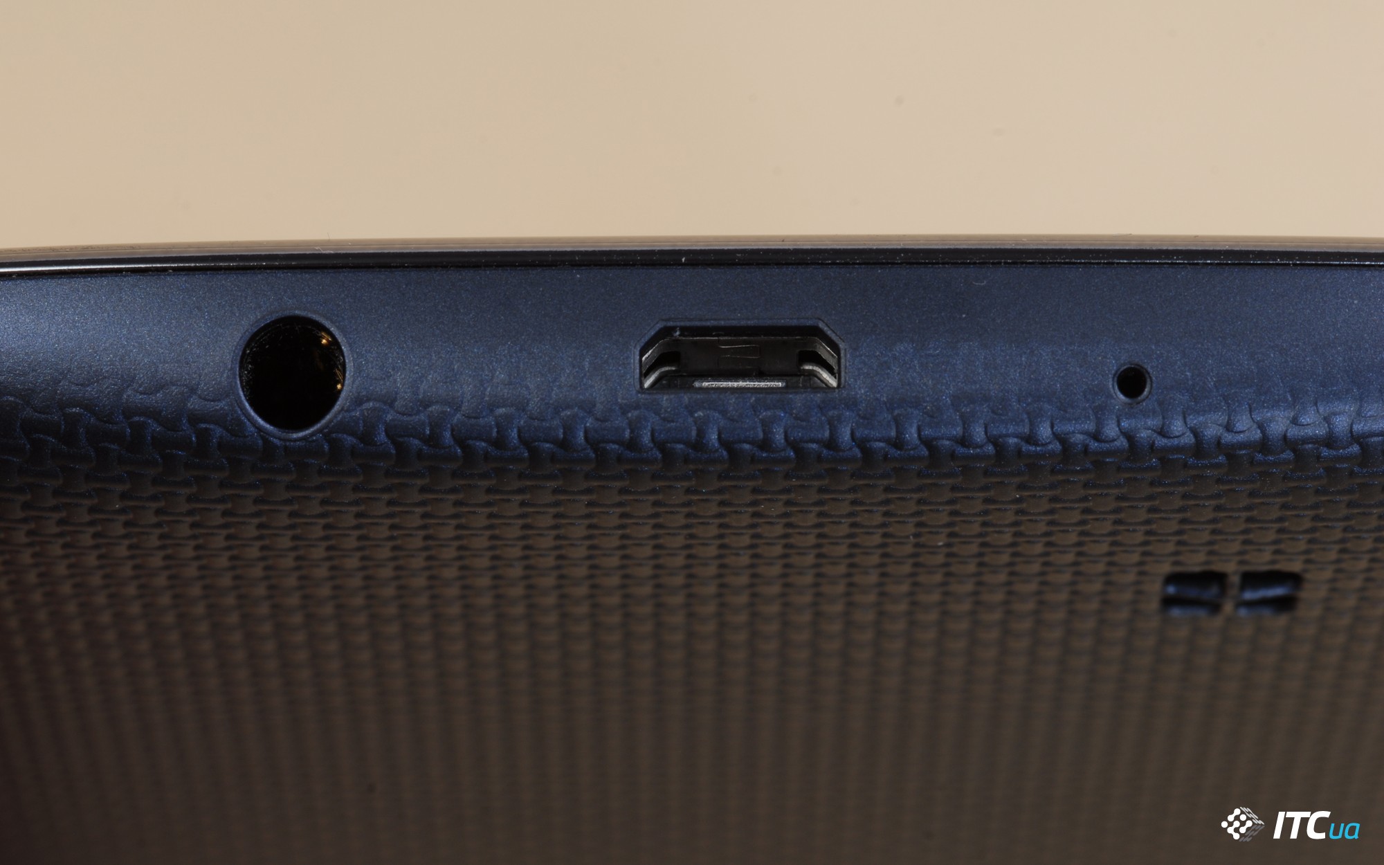 На нижнем торце расположен разъём для зарядки microUSB, левее от него jack 3,5 мм для подключения наушников, правее — разговорный микрофон.