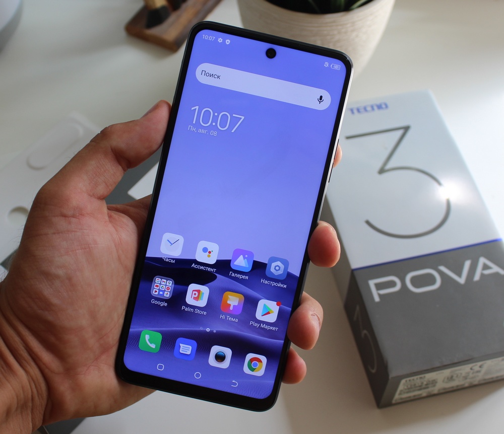 Основой дисплея выступила IPS-матрица из среднего сегмента. Ее максимальная яркость составляет 500 нит, и это превышает среднее значение конкурентов в 350-400 нит. У пользователей Tecno Pova 3 получится разглядеть изображение даже под прямыми солнечными лучами, не говоря о помещениях.