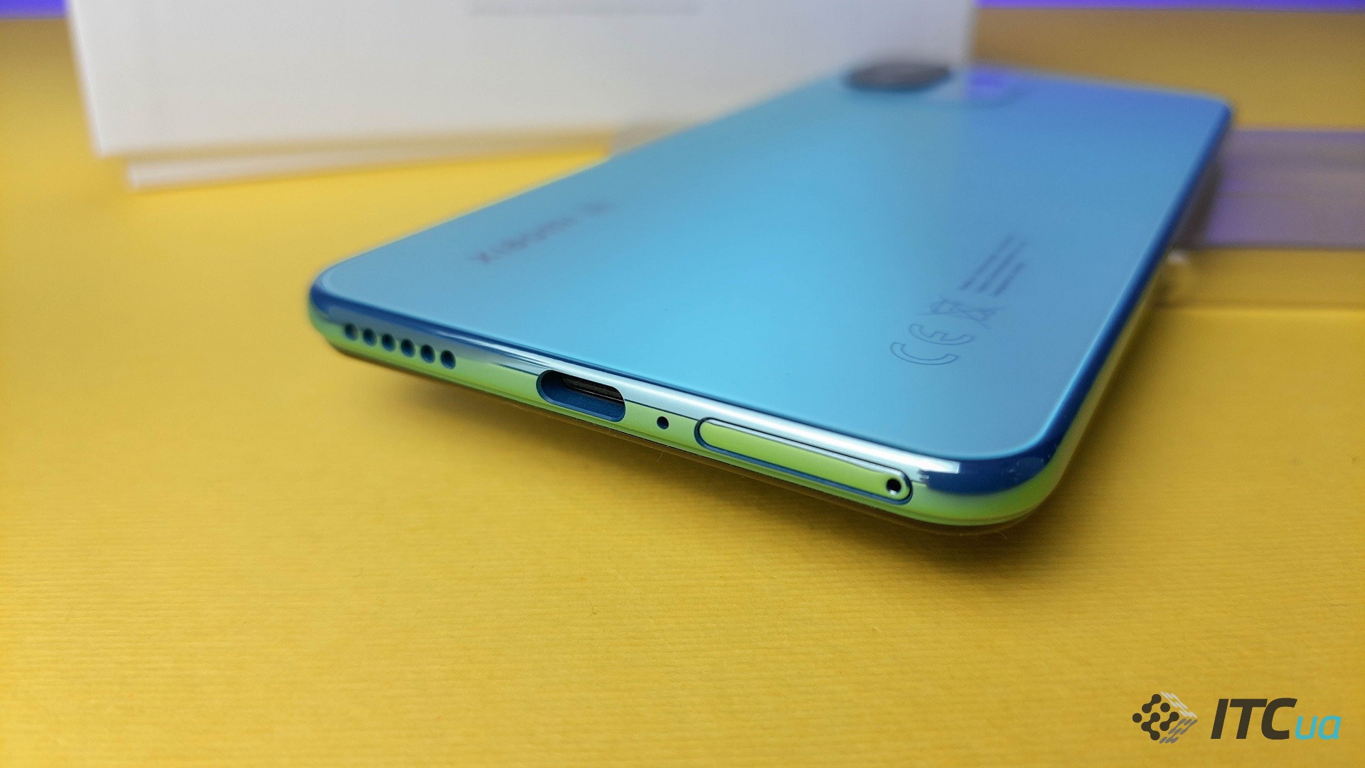 Снизу разместили порт USB C, динамик, еще один микрофон и слот для сим-карт. Их туда можно поставить две (nano-sim) или одна плюс карта памяти. Аудиоразъема 3,5 мм не предусмотрено. Для прослушивания музыки есть модуль Bluetooth или описанный выше переходник в комплекте.