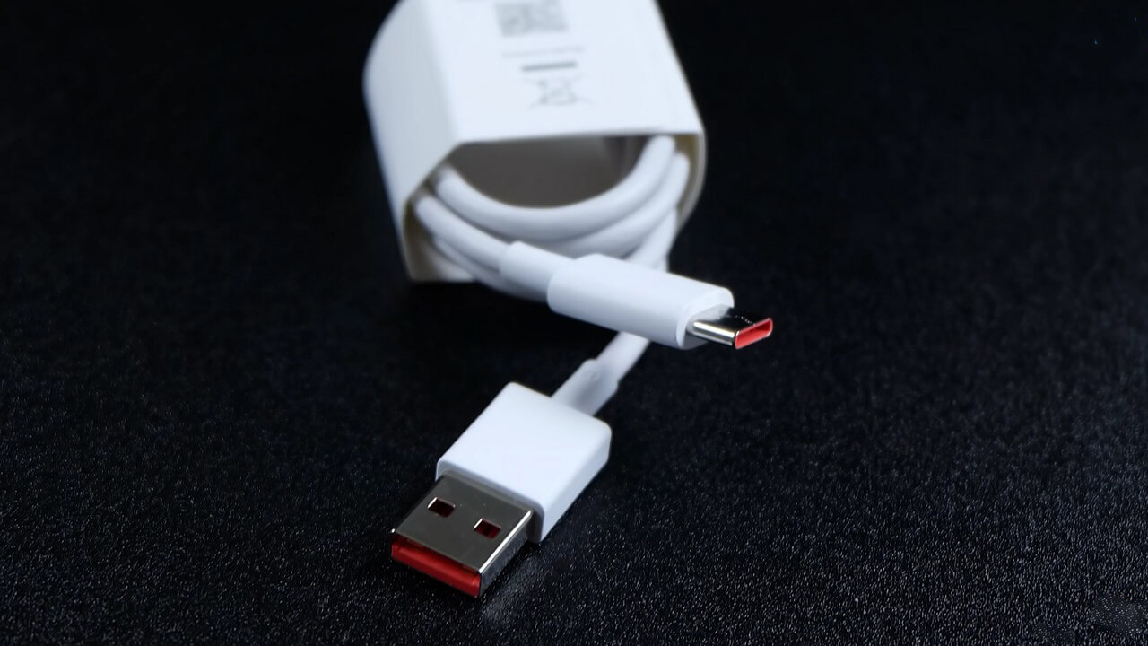 Внутри упаковки находится само устройство, а также прозрачный силиконовый чехол, блок питания мощностью 33 Вт, провод USB -> USB Type-C, скрепка для лотка SIM-карты, переходник для разъёма Type-C на 3.5 мм mini-jack, и документация.