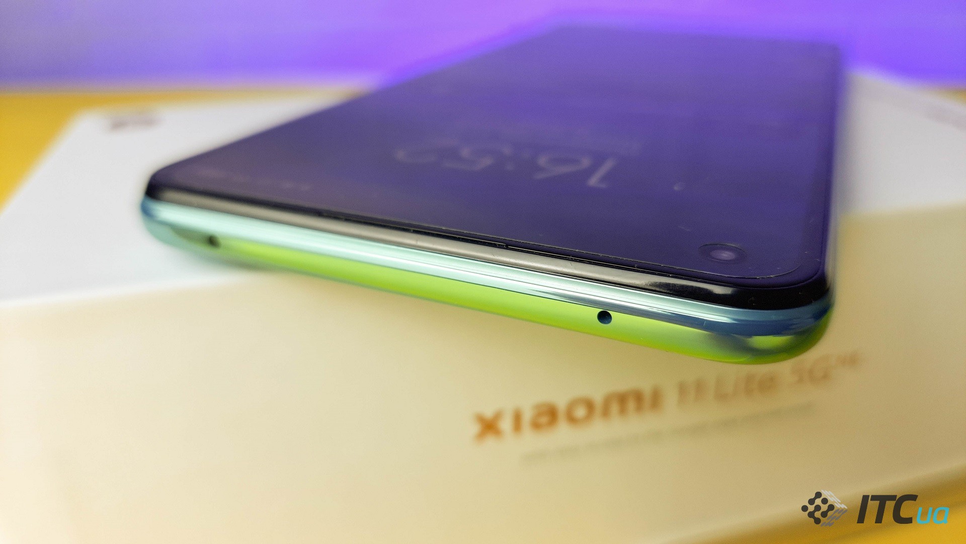 Кроме зеркальной «спинки» смартфон примечателен легкостью и тонким корпусом. При диагонали в 6,55″, Mi 11 Lite весит всего 157 г и имеет толщину менее 7 мм. Кстати, здесь нет никаких скруглений по краям, смартфон довольно-таки прямолинейный (не считая закругленных углов), но при этом устройство комфортно лежит в руке.
