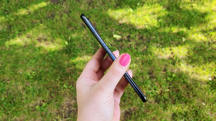 Боковые кнопки установили чуть выше середины, что универсально и удобно почти для любого размера руки. Срабатывание сканера отпечатка пальцев молниеносное. Тест мокрыми руками проходит через раз или два, поэтому лучше все же прикасаться к датчику сухими пальцами.