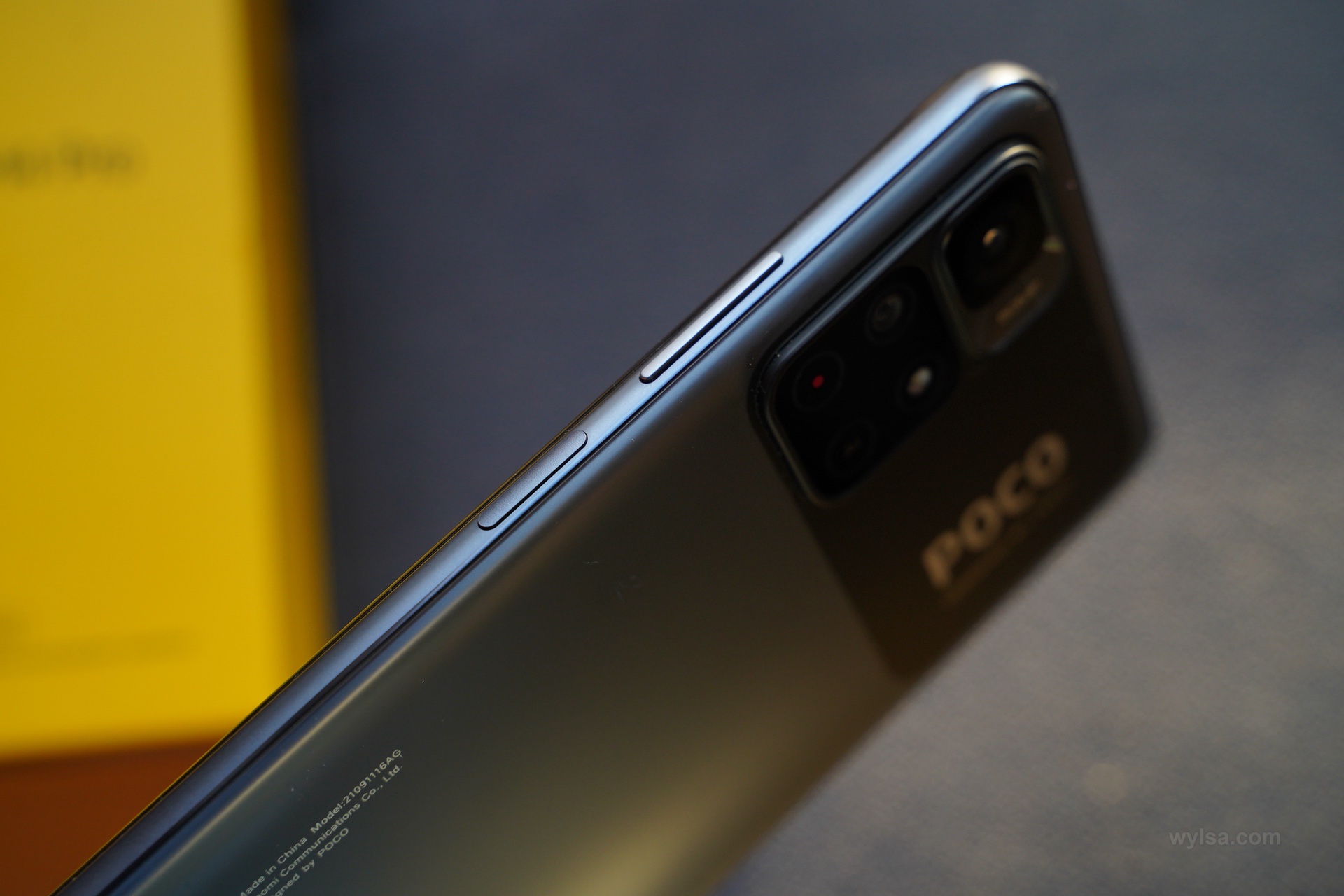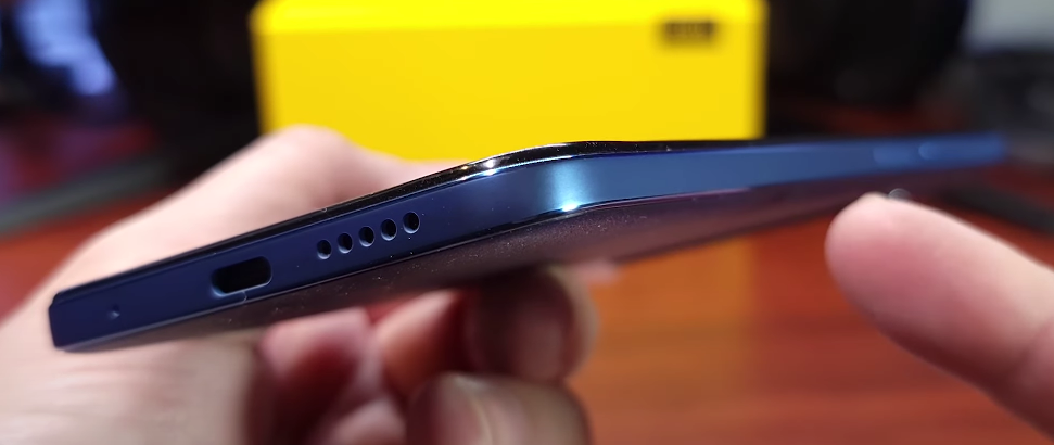 Расположение элементов на гранях смартфона схоже с таковым в большинстве других моделей POCO. На левой находится лоток для SIM-карт (можно установить две карты nanoSIM или же вместо одной из них карту microSD ёмкостью до 1 ТБ), на правой — качелька регулировки громкости и кнопка питания со встроенным сканером отпечатков пальцев. 3,5 мм аудиоразъем, порт USB Type-C, мультимедийный динамик и основной микрофон расположились на нижней грани, а на верхней — отверстия для ещё второго динамика, ИК-порт и микрофон шумоподавления.