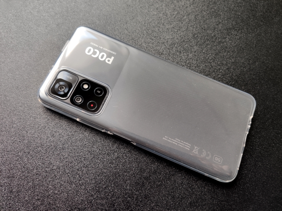 Как упоминалось выше, смартфон не скользкий и лежит в руке надёжно. Особенно если сравнивать со стеклянно-стальным iPhone 12/13 Pro, который в этом плане ближе к куску мыла и так и норовит выскользнуть при любом удобном случае. Но в холодную и промозглую погоду легко выронить из дрожащих ручонок даже пластиковый POCO M4 Pro. В таком случае эффективнее всего использовать комплектный силиконовый чехол. Он в меру жёсткий, весьма приличного качества, совершенно не скользкий и даже имеет небольшой выступ над модулем камер, защищая объективы от царапин.