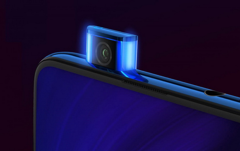 Вместо полноценной выдвижной панели, как на Xiaomi Mi Mix 3, здесь выдвигается только модуль камеры. Он находится на левой стороне корпуса, если смотреть на экран. Используется механизм с движком, камера автоматически выдвигается при переключении в режим съёмки селфи или при нажатии на кнопку питания при активной лицевой разблокировке.