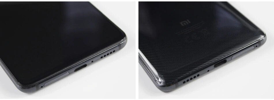 Наверху рамки находится разъём для наушников 3,5 мм. На нижнем краю корпуса располагается отсек для двух SIM-карт, разъём USB-C и решётка динамика.