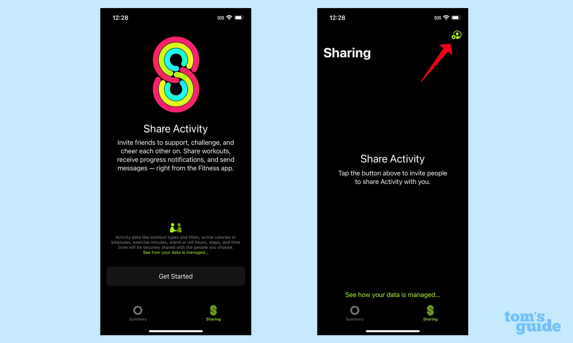 Есть еще один потенциальный мотиватор, включенный в Fitness, и он находится во вкладке «Совместное использование» приложения. Ты можешь пригласить друзей поделиться с тобой информацией о своих тренировках, и они смогут увидеть твои. Идея заключается в том, что, видя прогресс каждого, ты сможешь создать правильный стимул для того, чтобы не сидеть сложа руки и не видеть, как статистика активности твоих друзей оставляет тебя в пыли.