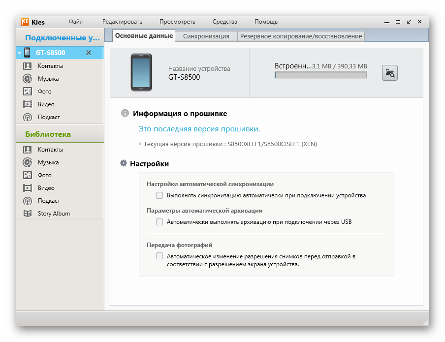 Чтобы обеспечить взаимодействие смартфона и программы-прошивальщика потребуются установленные в системе драйверы. Простейшим способом добавить необходимые компоненты в ОС для прошивки Samsung Wave GT-S8500, является установка программного обеспечения для управления и обслуживания смартфонов производителя — Samsung Kies .